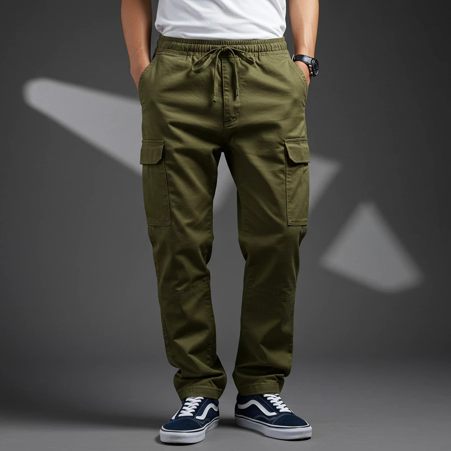 Cargo pants ini cocok buat kamu yang suka gaya casual tapi tetap kelihatan rapi. Bahannya nyaman dipakai seharian dan potongannya santai, jadi enak buat aktivitas sehari-hari seperti nongkrong, jalan, atau sekadar outfit santai.